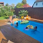 Sala de jantar, bem como máquinas de café/chá estão disponíveis para conveniência dos hóspedes. A cozinha autossuficiente no local também inclui microondas, chaleira elétrica e refrigerador. O aeroporto mais próximo da propriedade é Heviz-Balaton, localizado a 45 km. Há vários locais para relaxar, incluindo piscina ao ar livre, jacuzzi, banheira quente e sauna. As atividades locais incluem atividades de desportos aquáticos, caminhada e ciclismo. Tais opções de lazer como brinquedos e jogos de tabuleiro estão disponíveis na acomodação para garantir o entretenimento das crianças.